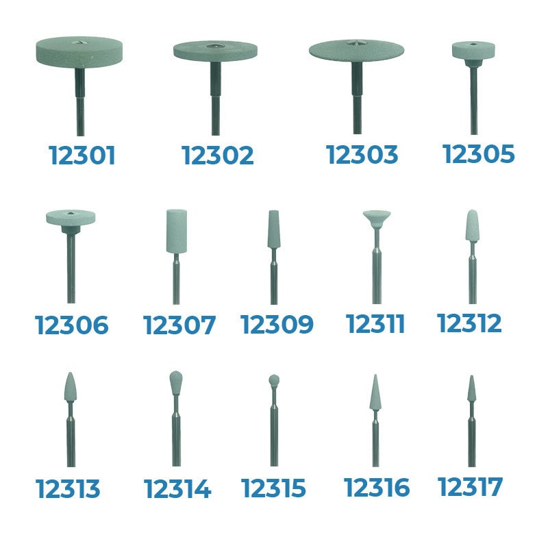 Utilizados para realizar un pequeño y rápido desgaste y al mismo tiempo pule el zirconio, cerámicas de aluminio y disilicato de litio.