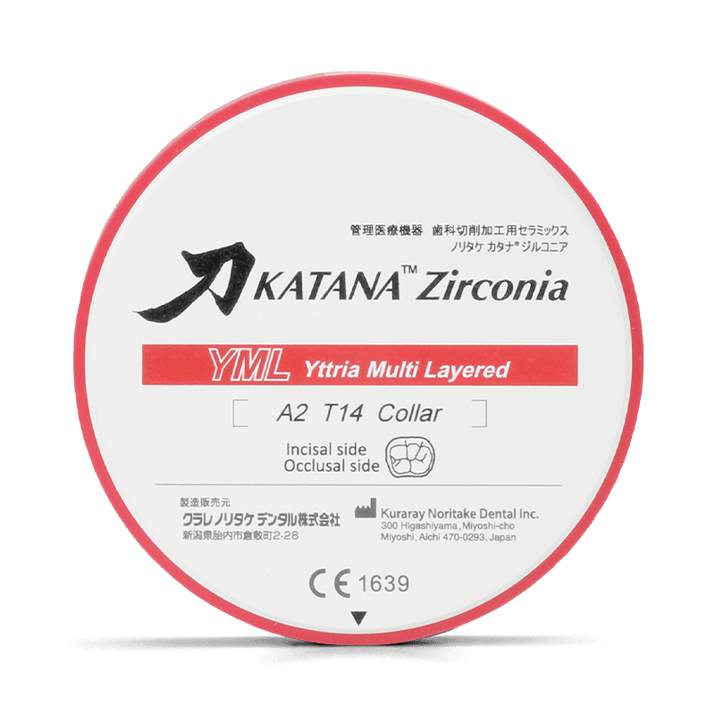 KATANA ™ Zirconia YML fue desarrollado en base al concepto de ser “realista” y expresar de forma precisa y natural el color y la translucidez de los dientes naturales.
